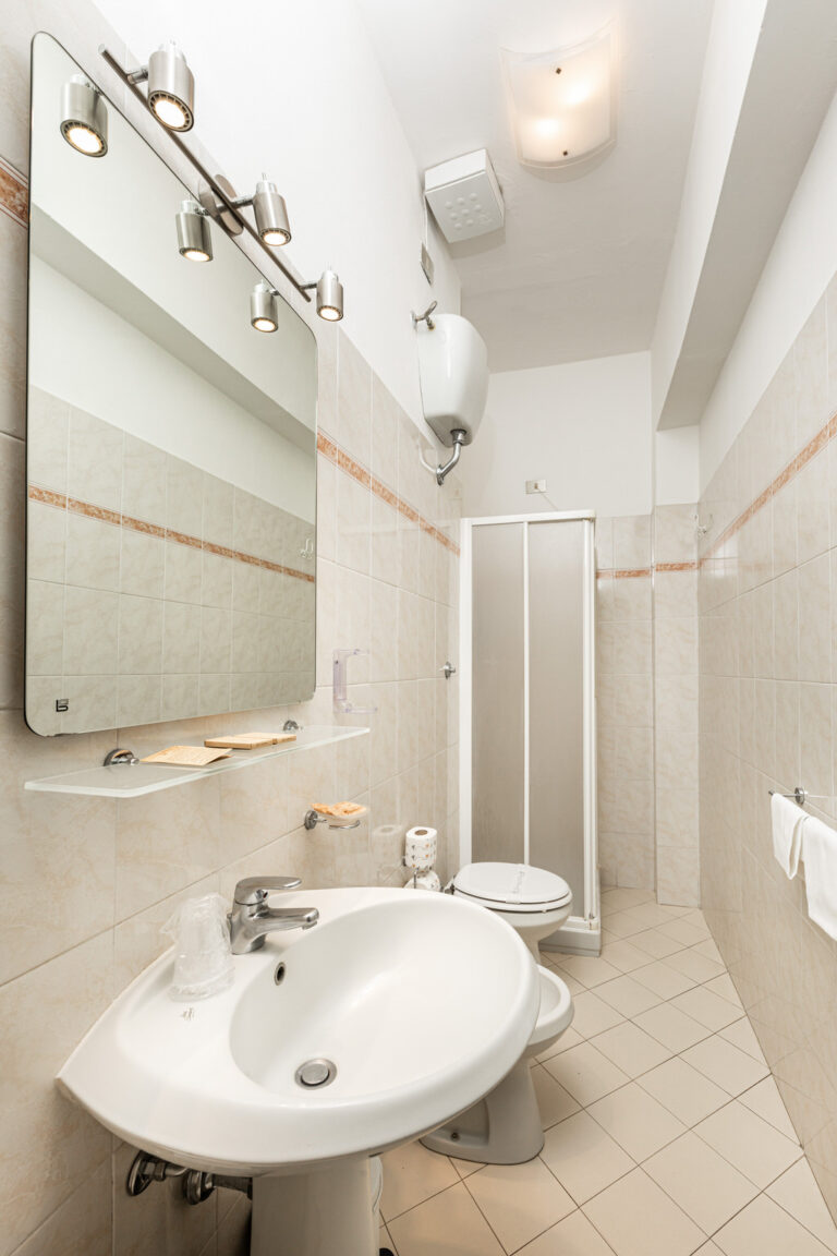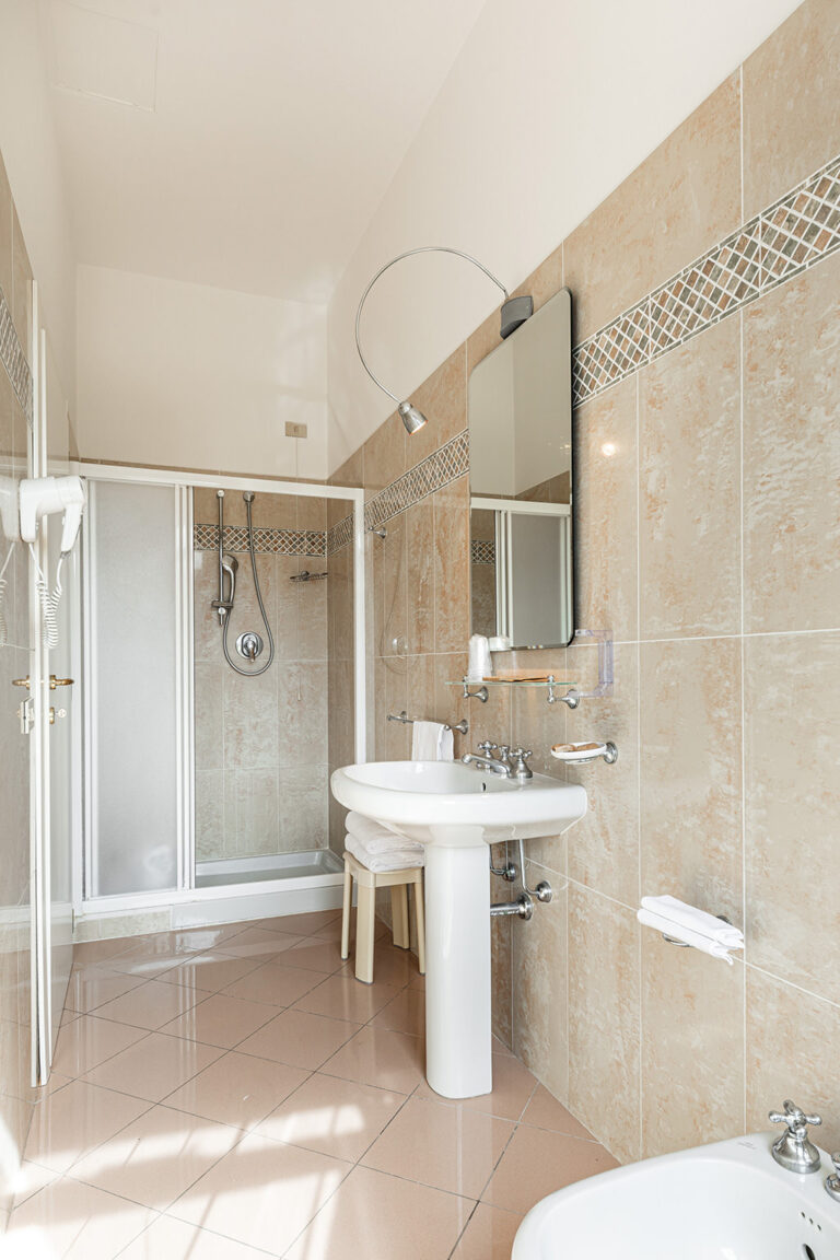 Camera dotata di letto matrimoniale o letti separati su richiesta. Bagno elegante con doccia.