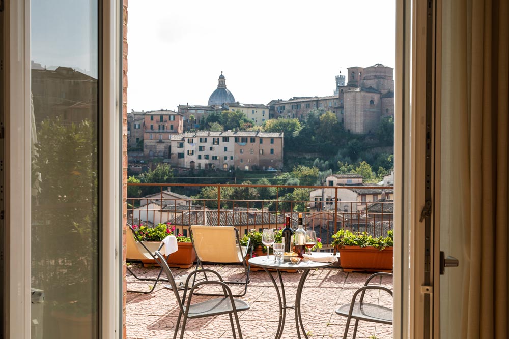 Le Junior Suite Matrimoniali possiedono la vista sul centro storico di Siena, hanno una superficie a partire da 19 m² e sono dotate di una terrazzina. Queste camere poi, sono tutte dotate di letto matrimoniale e su richiesta di due letti separati.