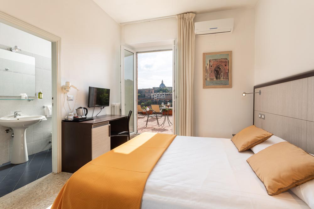 Le stanze Easy, con letto matrimoniale o due letti singoli su richiesta, sono poste nella parte interna, non affacciano sul centro storico e sono grandi a partire da 16 m².